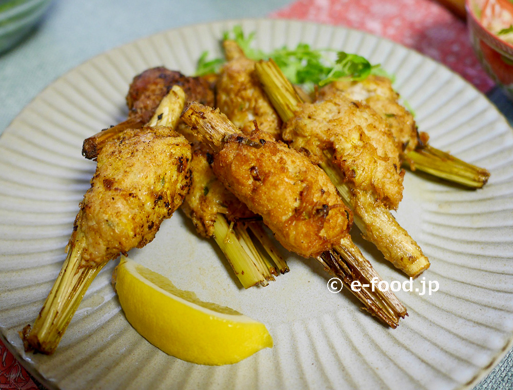 「ウア・シー・カイ」は、生のレモングラスの茎を縦に細かく裂いて、ひき肉のつくねを詰めて揚げたラオスの郷土料理です。