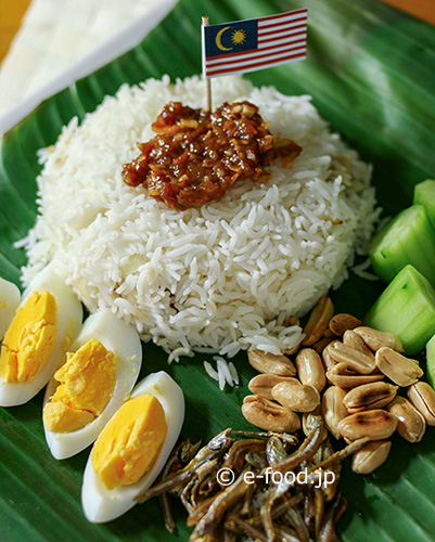 まず、インドネシアと共通したものも多い伝統的なマレー料理には、ナシゴレン(焼き飯)やミーゴレン(焼きそば)、サテー(甘いピーナッツソースをつけた串焼き肉)やピーナッツソースをかけたサラダのガドガド、マレー風フライドチキンのアヤムゴレン、朝食の定番であるナシレマ(上写真)といった料理があります。ココナッツミルクやチリソースを多用するのが特徴です。