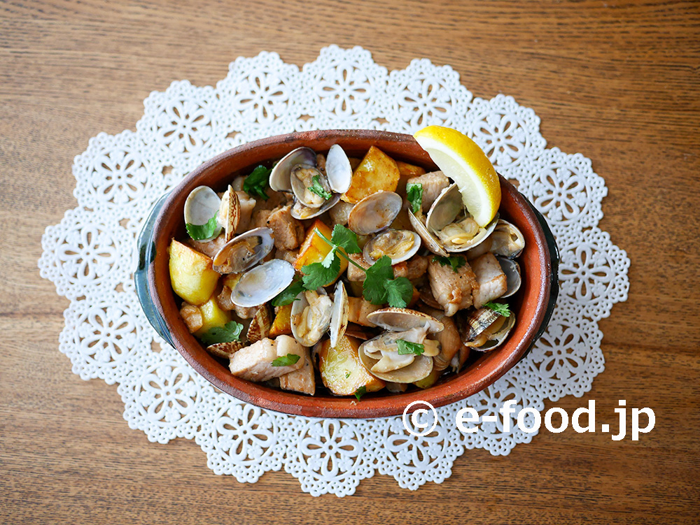 魚介料理のきわめつけとしては、いろいろな魚介類とトマトを密封した独特の鍋で煮るカタプラーナという、豪快な漁師料理が南部のアルガルベ地方にあります。これも、日本人にはなじみやすい味です。また豚とアサリを合わせたカルネ・デ・ポルコ・ア・アレンテジャーナ(上写真)という郷土料理も。
