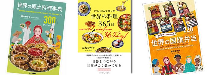 ♥世界各地で入手した伝統レシピを尊重しながら、なるべく国産食材を使い、日本の家庭でも手軽においしく作れるよう工夫しています。一方、本格的に再現したい方向けに、代用した食材には「現地ではこれを使う」と説明を心がけています。