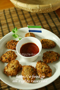 白い豆に黒のポイントの入ったパンダ豆(白黒豆)をつぶして揚げたビンチアカラも、西アフリカ諸国でポピュラーな料理。作り方は、中東の「ファラフェル」の西アフリカ版といってもよいでしょう。ビールのおつまみにも合うと思いますよ。