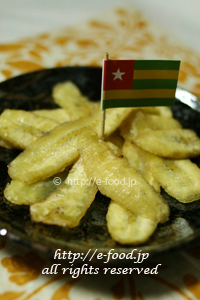 赤坂のトーゴ料理店「エコ・ロロニョン」のシェフによると、フライド・プランテン(青バナナのフライ)はスナックみたいなもので、必ずしもトーゴを代表する料理ではないそうですが、作りやすいのでここにご紹介します。