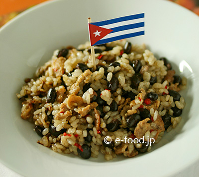 キューバを代表する料理のひとつが、このアロス・コングリ。お赤飯にちょっと似た感じの、日本人にはなじみのある黒いんげん豆の炊き込みご飯です。