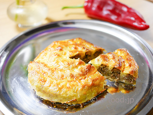 その作り方がとても個性的なので、Youtubeの動画をリンクしておきます。ただ円形に生地を流し込むのではなく、なぜか放射状に生地を塗りながら焼いていくため、作るのはかなり時間がかかります。以下は簡易版のレシピです。