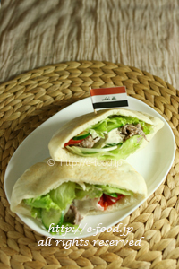 3.ピタパンに野菜と2をはさみ、お好みでヨーグルトソース、タヒニをかけていただく。