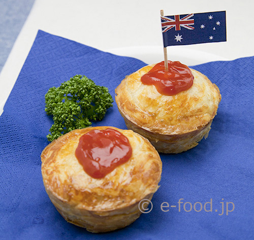 イギリス人が大好きなパイ料理の代表格であり、とりわけ特産の牛肉を使った小ぶりなミートパイは、ラグビーなどスポーツ観戦時に欠かせず、バーベキューとともにオーストラリアの国民食のような存在です。トマトソースをつけて食べるのがオージー流。