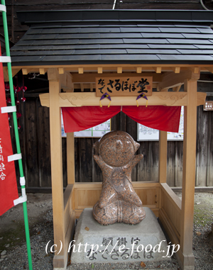 - 飛騨の縁起物の人形「さるぼぼ」の像。