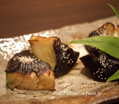 肝心の田楽の方は、オーソドックスなスタイルで、とろーり甘いみその味と、油のなじんだ賀茂なすが実においしかったです。プロフェッショナルなちょっとした技は、どちらも甘い白みそと赤だしの2種類のみそを使っていること。そして、飾りにはケシの実。さすが、見た目もきれいでした。