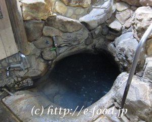 - 1日のうちに七色に変わるといわれるつぼ湯の内部。一般人でも30分ずつ貸切で入浴が可能。