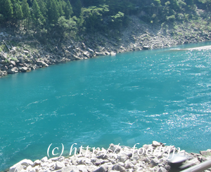 - エメラルド色が美しい熊野川。この上流を遡って熊野本宮へ。